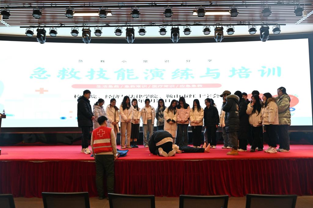 为加强学生生命安全教育,提高学生处理突发事件和意外伤害的应急能力,2月28日,经法学院联合校医院、鞍山市红十字会开展急救技能演练与培训活动,校医院院长程瑶、学院团委副书记张鹏飞、鞍山市红十字会工作人员以及学生代表近150人参与了本次活动。