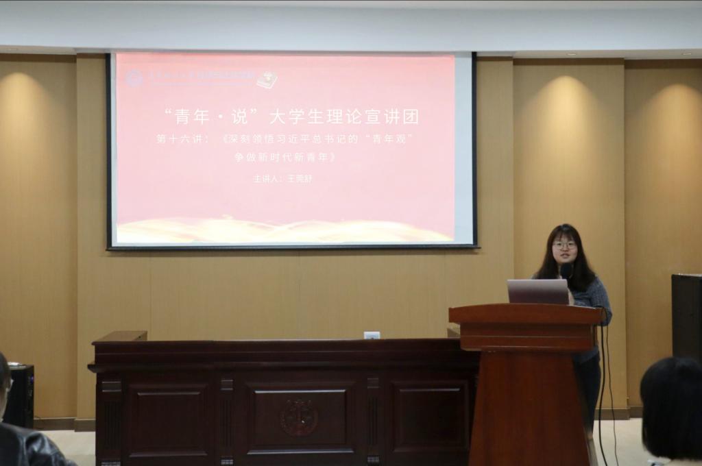 近日,经法学院于博识楼A402开展“青年·说”大学生理论宣讲。此次宣讲由学院研究生党员王莞舒担任主讲人,共计94名团员及入团积极分子参加了宣讲会。