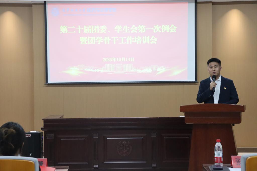 10月14日晚,经法学院第二十届团委、学生会第一次例会暨团学骨干工作培训会于博识楼A402召开。学院团委书记张鹏飞出席会议,学院团委、学生会全体团学骨干参加了此次会议。会议由学院第二十届学生会执行主席申佳鹭主持。