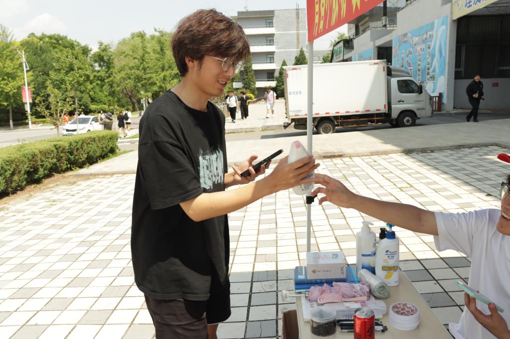6月17日,经法学院团委志愿服务中心组织“小红帽”志愿者于绿茵餐厅门口组织开展“青春不散场 爱心永续航”毕业季志愿募捐活动,现场近150名学生参加。