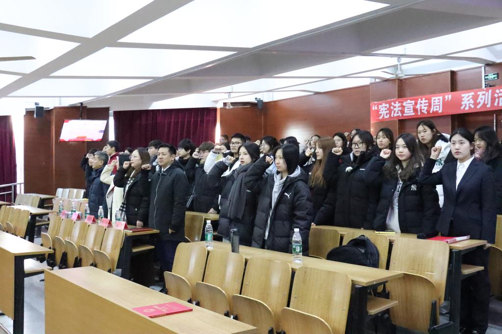 12月4日,经法学院与鞍山市法学会、市司法局于博识楼A402联合开展宪法日活动。本次活动由学院法律协会会长王一铭主持,鞍山市法学会、市司法局一行3人、经法学院副院长邵玲、法律系主任蒋喆出席,法学2023级和其他专业共60名学生参加。