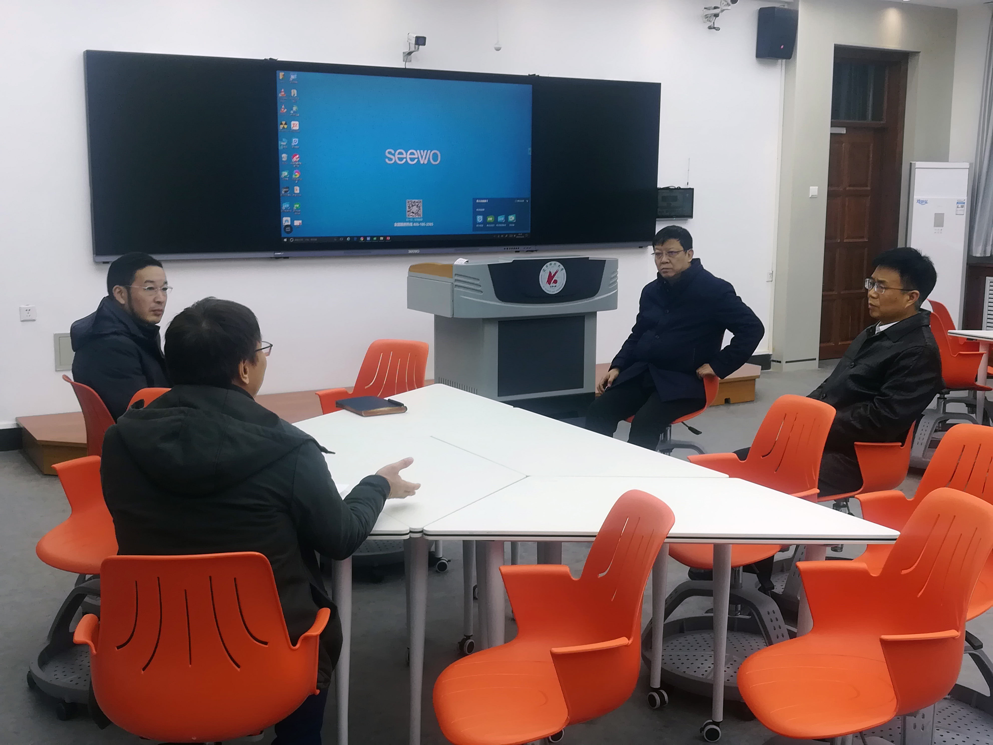 12月11日,英亚网站党委书记李平、校长张志强在教务处负责同志陪同下来到博学楼新建成的智慧教室,听取了教务处同志对智慧教室的建设情况。