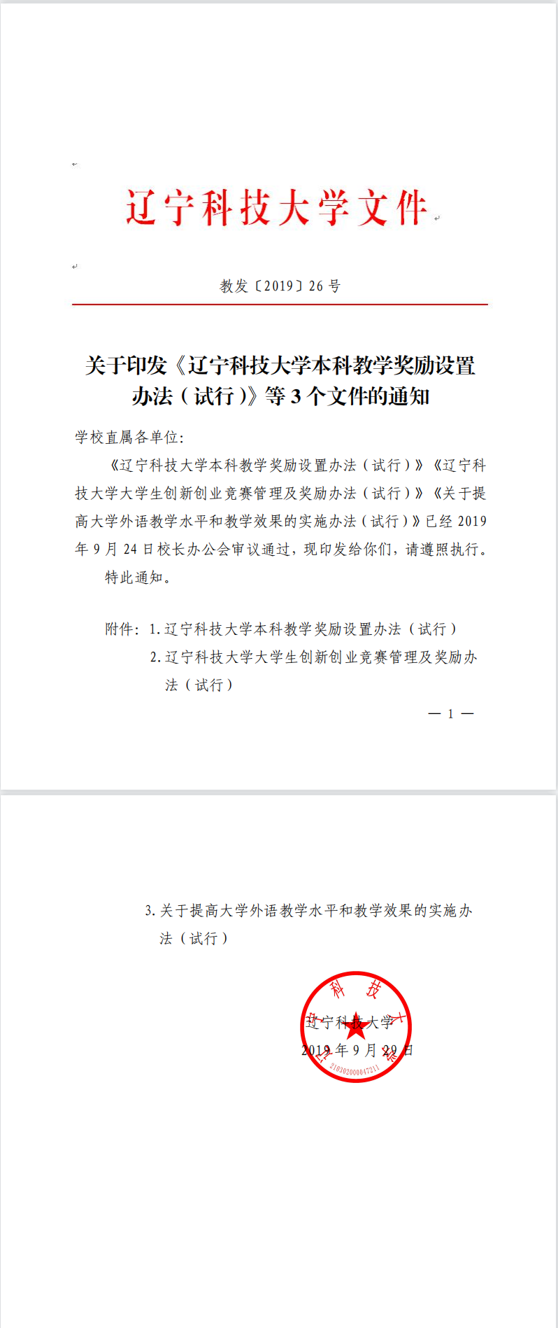 教发〔2019〕26号:关于印发《英亚网站本科教学奖励设置办法(试行)》等3个文件的通知