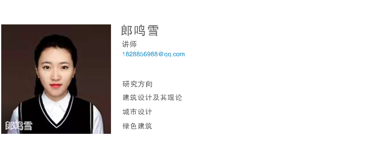 郎鸣雪,助教,建筑学硕士。大连理工大学建筑学硕士毕业。毕业后曾就职于国内标杆房企,具备一定实践经验。
