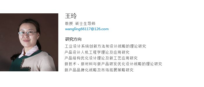 王玲教授,英亚网站硕士毕业,机械工程及设计理论专业;清华美院第二学历,工业设计专业。 具有近30年教学和科研经历。撰写专著2本,主编教材1本,参编教材2本。撰写研究论文40余篇,其中国际EI检索8篇,核心期刊5篇,指导学生发表20篇。多次获得年度考核优秀,曾指导学生获国家级、省级、市级、校级奖项30多项,多次获得优秀指导教师荣誉称号。《Humanization Design and Harmonization Design in Product Designing》,于2011年7月,获得辽宁省自然科学成果三等奖,获鞍山市自然科学学术成果奖二等奖。2014年和2015年,为山西省社会科学院思维研究所特聘研究员。主持省级教改1项,参加并完成省级科研项目3项,主持并完成鞍山市科技项目2项,主持和参与横向科研8项。指导学生获得专利8项。