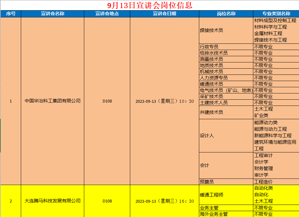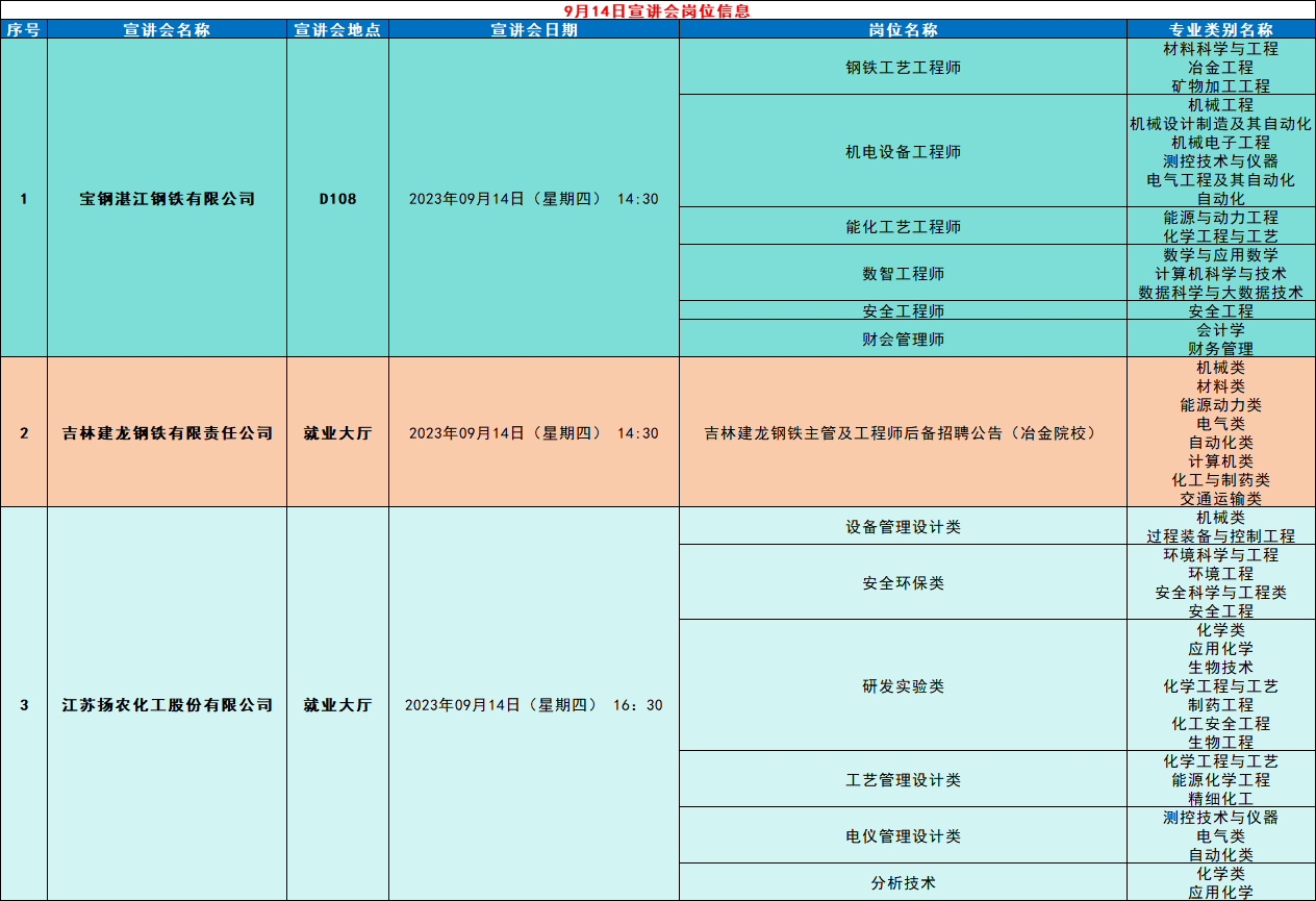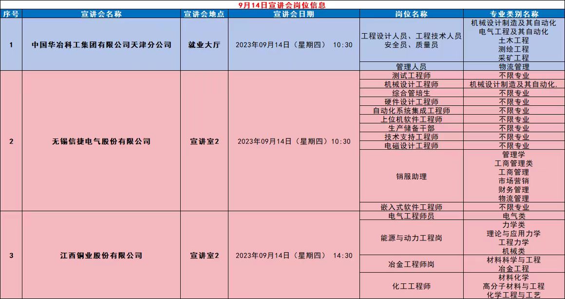矿业学院九月宣讲会岗位信息
