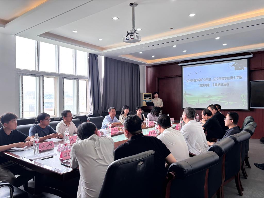 矿业学院党委书记陈功庆介绍了矿业学院总体党建情况,对辽科院资土学院一行的到来表示欢迎。他说,在党的 104 岁生日之际开展联创共建,既是对伟大建党精神的传承弘扬,也是落实高校“一融双高”建设工作的重要实践。矿业学院院长徐振洋提出,两学院同属矿业工程领域,在学科布局上具有高度关联性,希望以此为起点,推动双方在人才培养、科研攻关、社会服务等方面的深度融合。