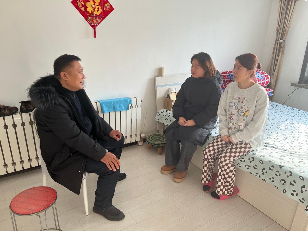 在胡同学家中,招生就业处处长任洪强等与学生及家长亲切交流,详细了解学生学习和生活情况,鼓励学生树立长远目标,做好学业和职业规划,认真学习,积极参加文体活动,通过不断提升自己,努力追求更好发展,将来改善家庭生活条件。各位老师将持续提供指导和帮助,与学生共同克服困难,助力学生成长成才。矿业学院辅导员白龙君和家长进行了深入的交流和沟通,向学生家长详细地介绍了学生的在校表现,学习状况,矿业行业发展现状,就业前景等,鼓励学生及早树立发展目标,克服高数和化学方面学习短板,不断提高成绩。
