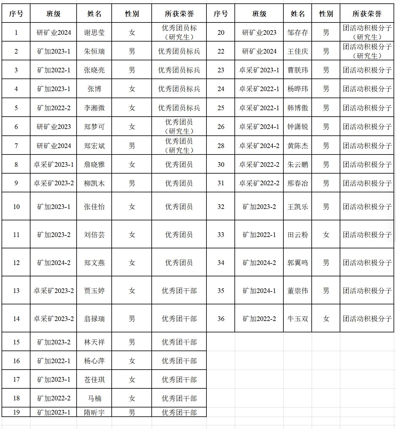公示期截至2025年10月15日,如有异议,请在公示期内与矿业工程学院团委反映。