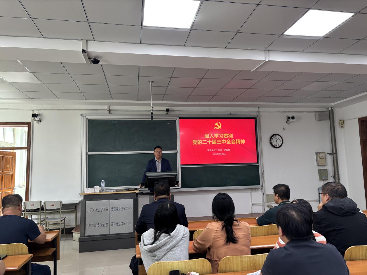 为深入学习贯彻党的二十届三中全会精神,根据学校党委的总体安排和科学部署,英亚网站矿业工程学院、继续教育学院、体育部于9月24日,在博学楼A305教室举办了学习宣传党的二十届三中全会精神宣讲报告会,学校宣讲团成员学生处处长纪振廷作题为《深入学习贯彻党的二十届三中全会精神》的宣讲,全体师生党员参加。