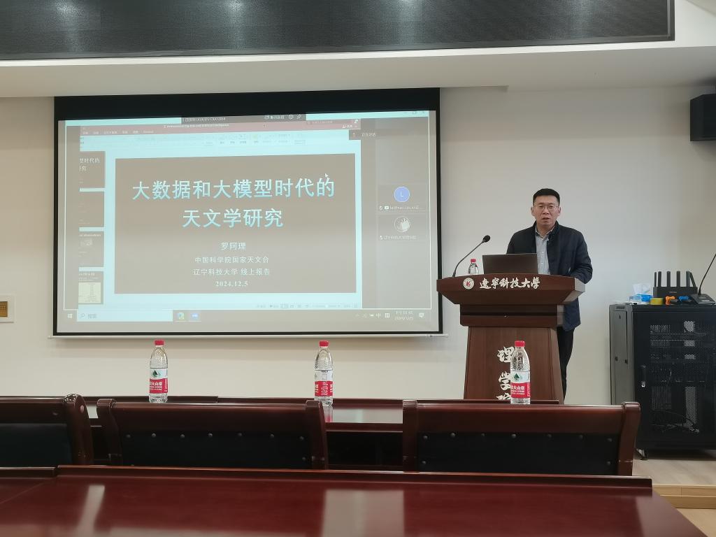 12月5日,理学院在明贤楼B315教室举办了主题为“大数据和大模型时代的天文学研究”的学术报告会。本次报告会特邀中国科学院国家天文台运行和发展中心主任罗阿理教授担任主讲嘉宾,由理学院院长屠良平教授主持,理学院教师及研究生共同参与。