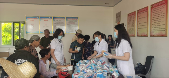 在王府镇,联合慰问小组与镇、村领导们进行了座谈交流。王府镇党委副书记宋贺对驻村干部的工作表现给予了充分肯定和高度评价:为村里修路2.1公里、为村里残疾人配齐辅助器具等,切切实实为村里和老百姓办了很多实事。同时介绍了当地自然特征、产业结构和经济发展现状,感谢英亚网站对乡村助力振兴等方面的援助。联合慰问小组感谢当地政府对驻村干部在工作、生活等方面的帮助和支持,并对学校办学条件、学科特点等方面进行介绍,同时希望驻村干部们继续发扬攻坚克难的优良作风,发挥好纽带作用,用实际行动和工作实绩回报组织的信任。座谈会后,走访慰问了退役老兵、老党员家庭,为他们送去了生活物资;校医院的医护人员为村民们送去了药品。