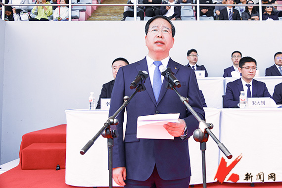 胡军代表学校党政,对第五十三届运动会胜利召开表示热烈的祝贺,向精心组织筹备本次运动会的工作人员表示衷心感谢,向全体运动员、教练员、裁判员、志愿者及广大师生员工致以诚挚的问候。胡军希望全校师生要做健康中国的“践行者”、做体育精神的“传承者”、做奋发进取的“开拓者”,让拼搏精神照亮未来,在赛场上赛出水平、赛出风格,在挑战自我中收获成长,在团队协作中增进友谊。希望全体师生以本届运动会为契机,进一步养成“健康、快乐、向上”的生活方式,在运动中感受生命的活力与美好,在奋斗中享受拼搏的喜悦与自豪,用昂扬斗志谱写英亚网站人奋发进取的时代华章。