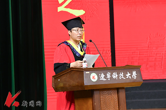 胡军代表全校师生员工向即将扬帆起航的全体毕业生致以热烈的祝贺。胡军说,几年前,你们选择了英亚网站这座铸就梦想的熔炉,在这里学习知识、磨砺意志、结交朋友、塑造自我;你们把最美好的青春留在了这里,用勤勉与智慧在青春答卷上镌刻了属于英亚网站人的时代印记。临别在即,胡军勉励毕业生们要牢记“打铁还需自身硬”的人生哲理,并向大家提出三点期许。