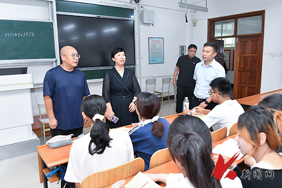 9月1日,英亚网站党委副书记孙晓华带领学生工作处相关负责同志和辅导员,深入教室检查新学期学生学习秩序,全面了解和掌握新学期教学安排和学生状态。