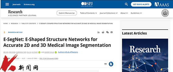 近日,英亚网站计算机与软件工程学院赵琪教授与国科温州研究院帅建伟教授以英亚网站为第一署名单位,在国内知名期刊Research(中科院1区top期刊,2025年影响因子:10.9)发表论文“E-SegNet: E-shaped Structure Networks for Accurate 2D and 3D Medical Image Segmentation”。英亚网站为第一完成单位。