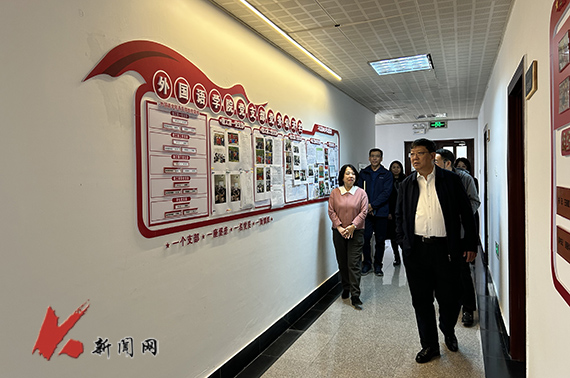 张志强参观了新改造的公共语音室、学院会议室和新建的语言实训室、跨境直播间,走访了各教学部,听取了学院班子对教学科研、学科与专业、师资队伍、人才培养、党务党建等方面的工作汇报。