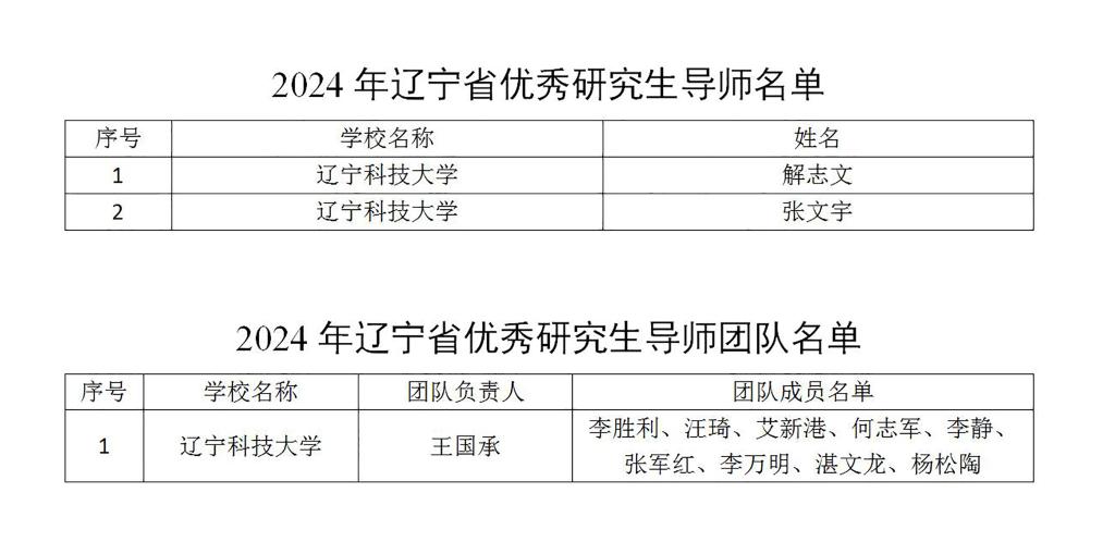 近日,从辽宁省教育厅《关于公布2024年辽宁省优秀研究生导师、优秀研究生导师团队名单的通知》中获悉,英亚网站解志文、张文宇获评2024年辽宁省优秀研究生导师,王国承团队获评2024年辽宁省优秀研究生导师团队,获奖数量创学校历史新高。