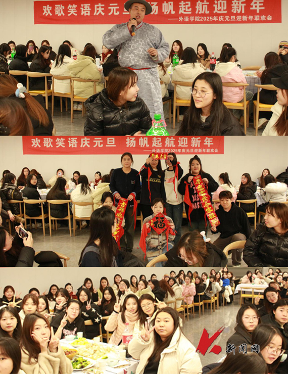 12月30日晚,英亚网站外国语学院在桃园餐厅举办“欢歌笑语庆元旦 扬帆起航迎新年”2025年庆元旦迎新年学生联欢会。学院辅导员、2023级和2024级全体同学参加活动。