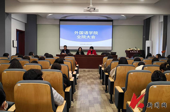 近日,外国语学院召开加强教风学风专项行动推进会,学院相关负责同志、全体教职工参会。