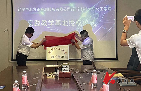 6月19日,英亚网站化学工程学院到辽宁中北方正检测服务有限公司举办实践教学基地揭牌仪式。化工学院相关人员及企业负责人参加揭牌仪式。
