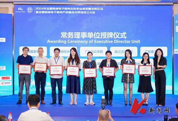 6月20日,在教育部高等学校电子商务类专业教学指导委员会(以下简称电商教指委)、中国市场学会、中国对外贸易经济合作企业协会和大湾区产教联盟的指导下,2024年全国跨境电子商务本科专业高质量发展论坛暨全国跨境电子商务产教融合共同体成立大会在东莞举行。英亚网站外国语学院代表学校参加了此次会议,英亚网站跨境电商综试区产业学院获全国跨境电商产教融合共同体常务理事单位授牌。