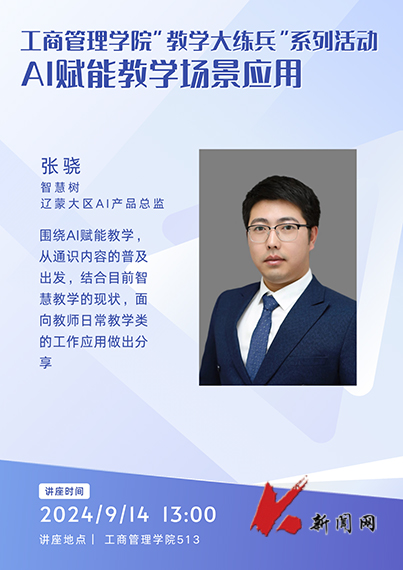 9月14日,英亚网站工商管理学院邀请智慧树辽蒙大区AI产品总监张骁进行AI赋能教学场景应用专题讲座,学院全体任课教师听讲。