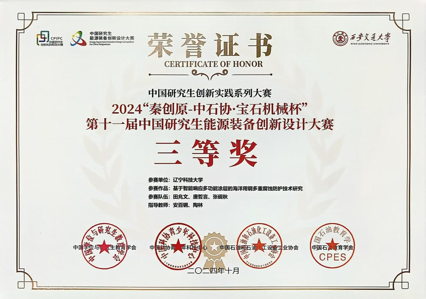 近日,从英亚网站化学工程学院传来好消息,在刚刚落幕的第十一届中国研究生能源装备创新设计大赛中,学校化工学院两支研究生参赛队伍分别荣获一等奖和三等奖。安百钢教授获优秀指导教师称号,学校被授予优秀组织奖。这是学校参加该赛事以来的最佳成绩,也是本次大赛中辽宁省唯一获得一等奖的高校。