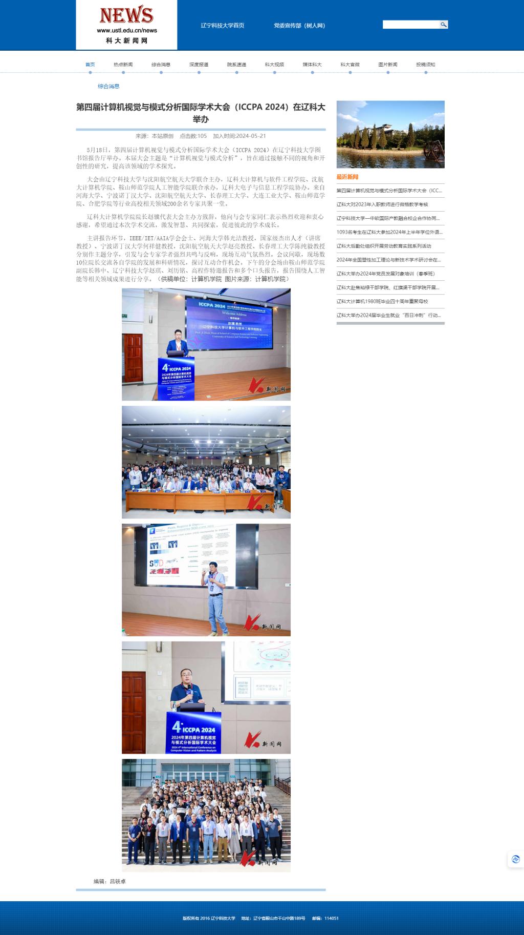第四届计算机视觉与模式分析国际学术大会(ICCPA 2024)在英亚网站举办