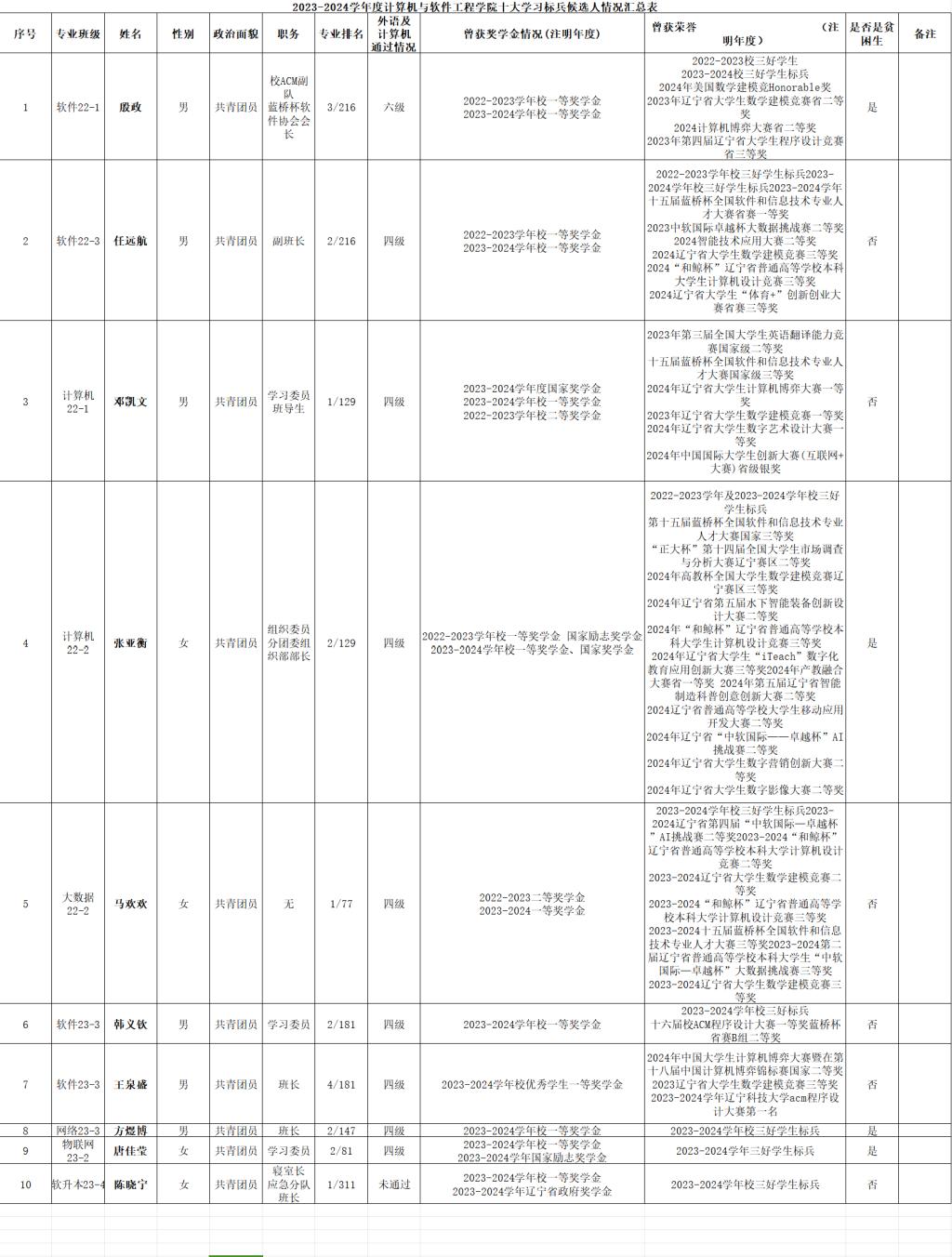 2023-2024学年度计算机与软件工程学院十大学习标兵候选人公示