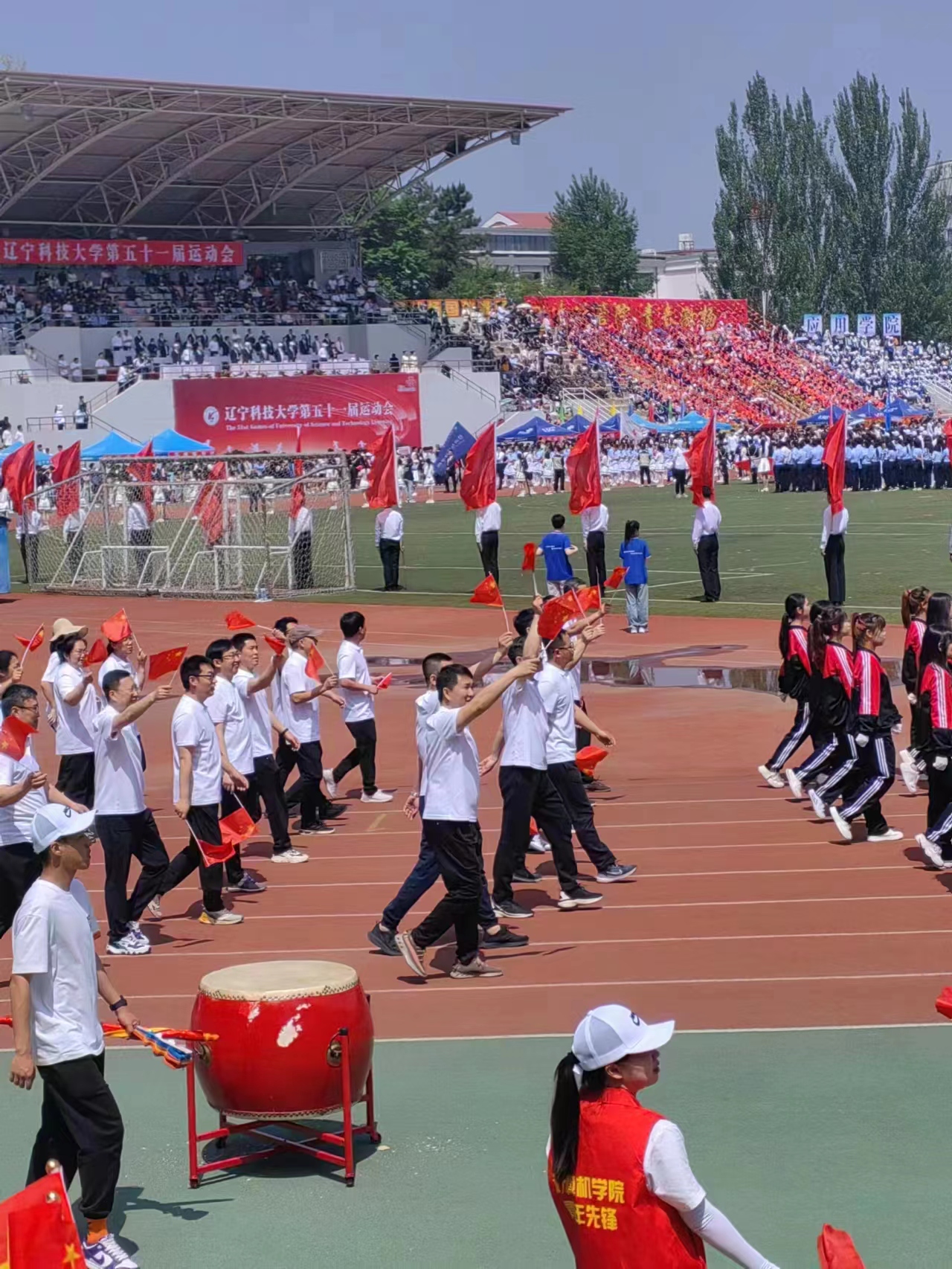 学院工会组织教职工方块队参加校运动会检阅