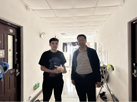 在宿舍,学院领导详细询问留学生近期的学习生活情况、节日期间的出行计划以及是否存在生活上的困难.“假期外出一定要注意安全,记得提前报备行程。”“宿舍用电要规范,离开时务必关闭电源。”一句句温暖的问候、一声声细致的提醒,让留学生们在异乡感受到了家人般的关怀。领导们还耐心倾听留学生的需求与建议,对他们提出的问题逐一进行解答,并表示学院会持续为留学生营造安全、舒适、便捷的学习生活环境。