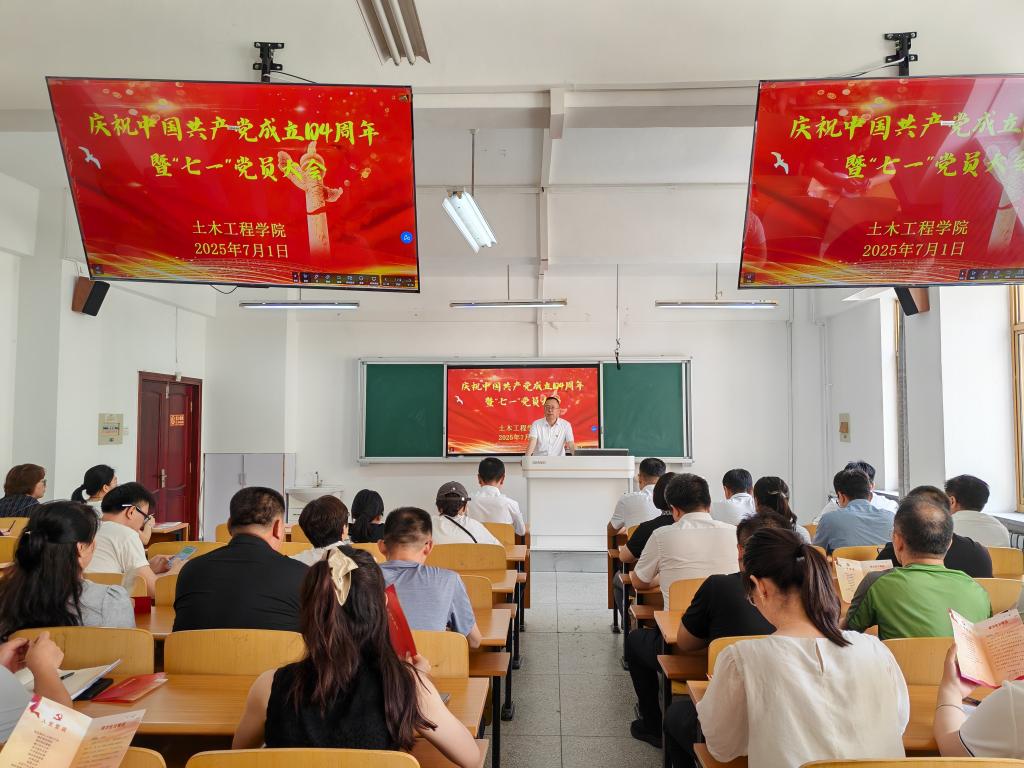 为庆祝中国共产党成立104周年,激励全院党员奋勇争先、建功立业,2025年7月1日,英亚网站土木工程学院在学院 A508 会议室召开了庆祝中国共产党成立 104 周年暨“七一”党员大会全体教职工党员大会,大会由学院党委书记张晋主持,学院全体教工党员参会。