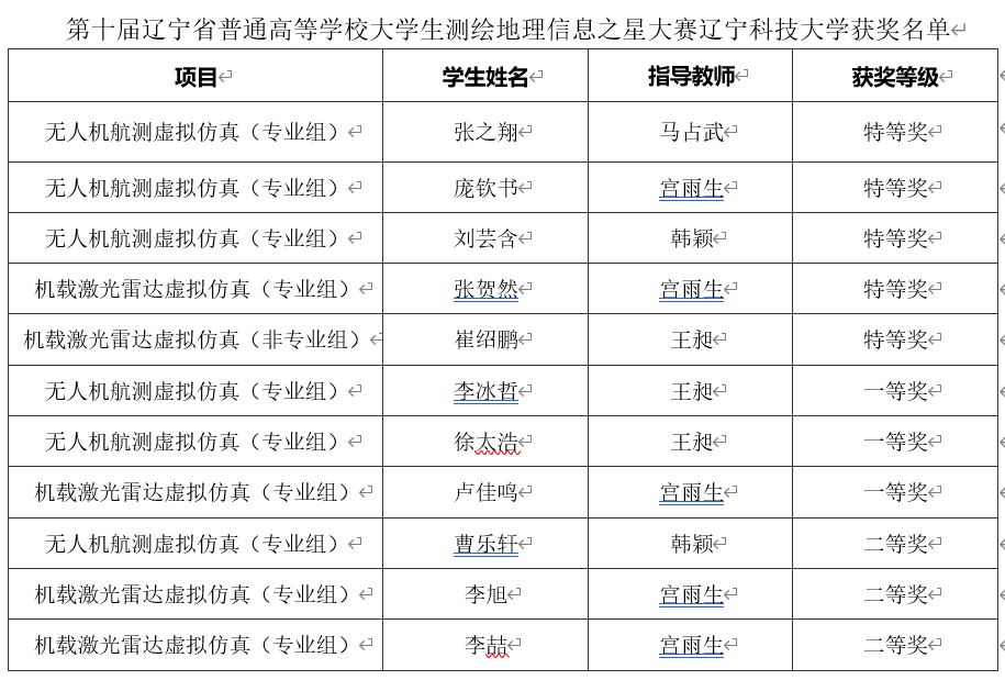 第十届辽宁省普通高等学校大学生测绘地理信息之星大赛英亚网站获奖名单