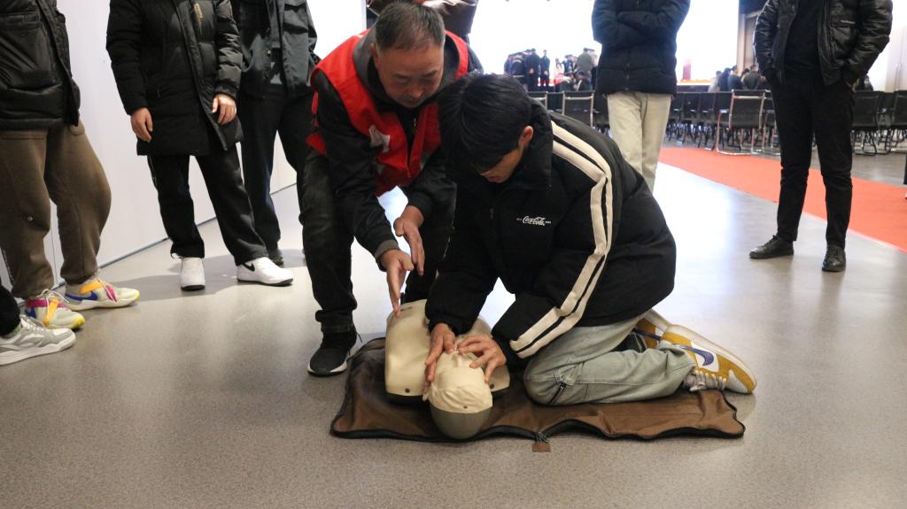 市红十字会专业培训师从身边案例入手,介绍了增强安全防范意识和掌握应急救护技能的重要性,并围绕救护概论、心肺复苏和AED使用技巧等三个方面进行详细讲授。培训师充满激情的讲解调动起同学们的参与热情,大家纷纷举手发言,准确回答出互动环节的提问。实操阶段,培训师将现场同学进行分组,“手把手”教授面对突发状况时常用的处理方法及正确的操作规范,并及时纠正大家实操过程中暴露出的问题,经过认真体会和反复练习,与会师生均顺利通过“现场验收”。
