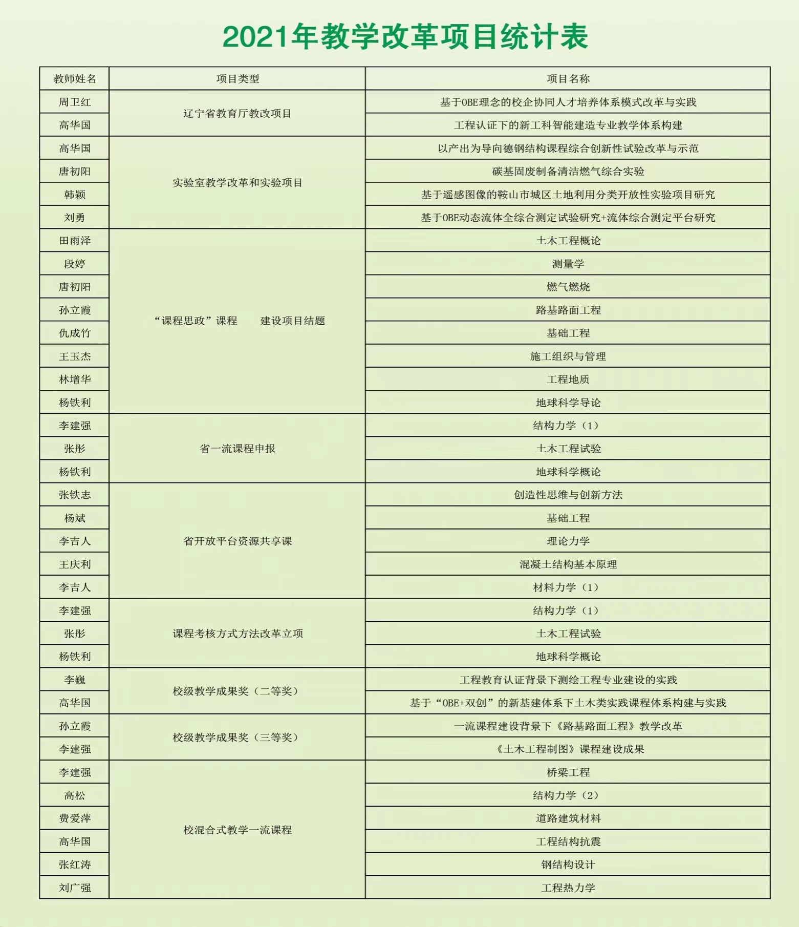 土木学院2021年教学成果统计