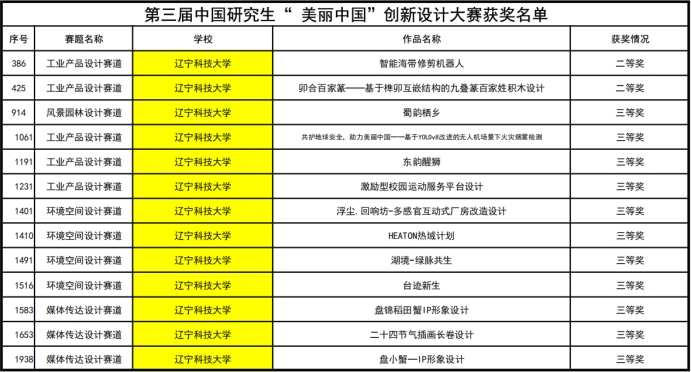 从建艺学院获悉,第三届中国研究生“美丽中国”创新设计大赛在黑龙江大学圆满落下帷幕。我校研究生在工业特产品设计赛道、风景园林设计赛道、环境空间设计赛道、媒体传达设计赛道等共计斩获二等奖2项、三等奖11项。