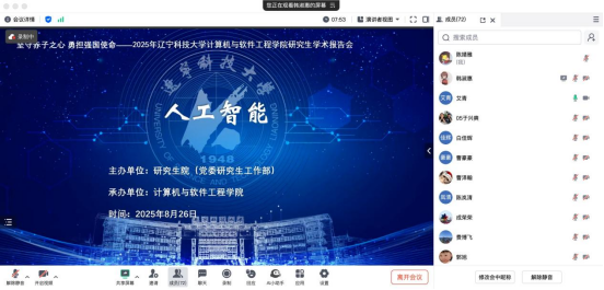 报告环节中,韩淑惠等12位研究生依次登台,围绕人工智能领域的技术突破与实践应用,系统展示了各自的最新研究成果。汇报内容涵盖人工智能算法优化、行业场景落地等多个方向,主讲人不仅清晰呈现了研究的核心框架与实验数据,更针对研究过程中的难点突破、创新思路展开深入解读,充分展现了学院研究生在人工智能领域的科研探索能力与学术思考深度。