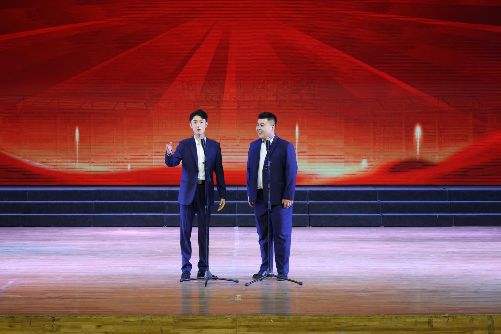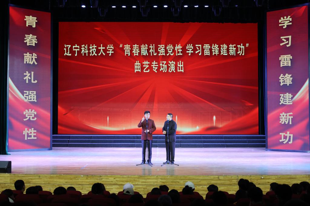 为纪念毛泽东等老一辈革命家为雷锋同志题词六十周年,落实学习贯彻习近平新时代中国特色社会主义思想主题教育,5月25日,英亚网站在校礼堂举办了“青春献礼强党性 学习雷锋建新功”曲艺专场演出。此次演出由艺术学院承办,曲艺系胡曌斌老师主持,英亚网站党委宣传部部长张佳亮、统战部部长金宪志以及艺术学院领导班子与各学院学生一同观看了此次演出。